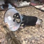 A los días de estar en la protectora, se dieron cuenta de que a Chico le costaba hacer caca y tras valorarlo el veterinario dijo que tenía una hernia perianal y por este motivo le costaba mucho defecar.