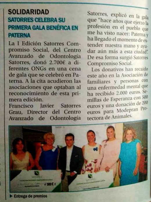 Este mes, han sido muchos los medios periodísticos que se han hecho eco de la Entrega de Premios de la «I Edición Satorres Compromiso Social». Esta Gala en la que se donaron 2.700€ a diferentes ONG’s se celebró el pasado 1 de julio.